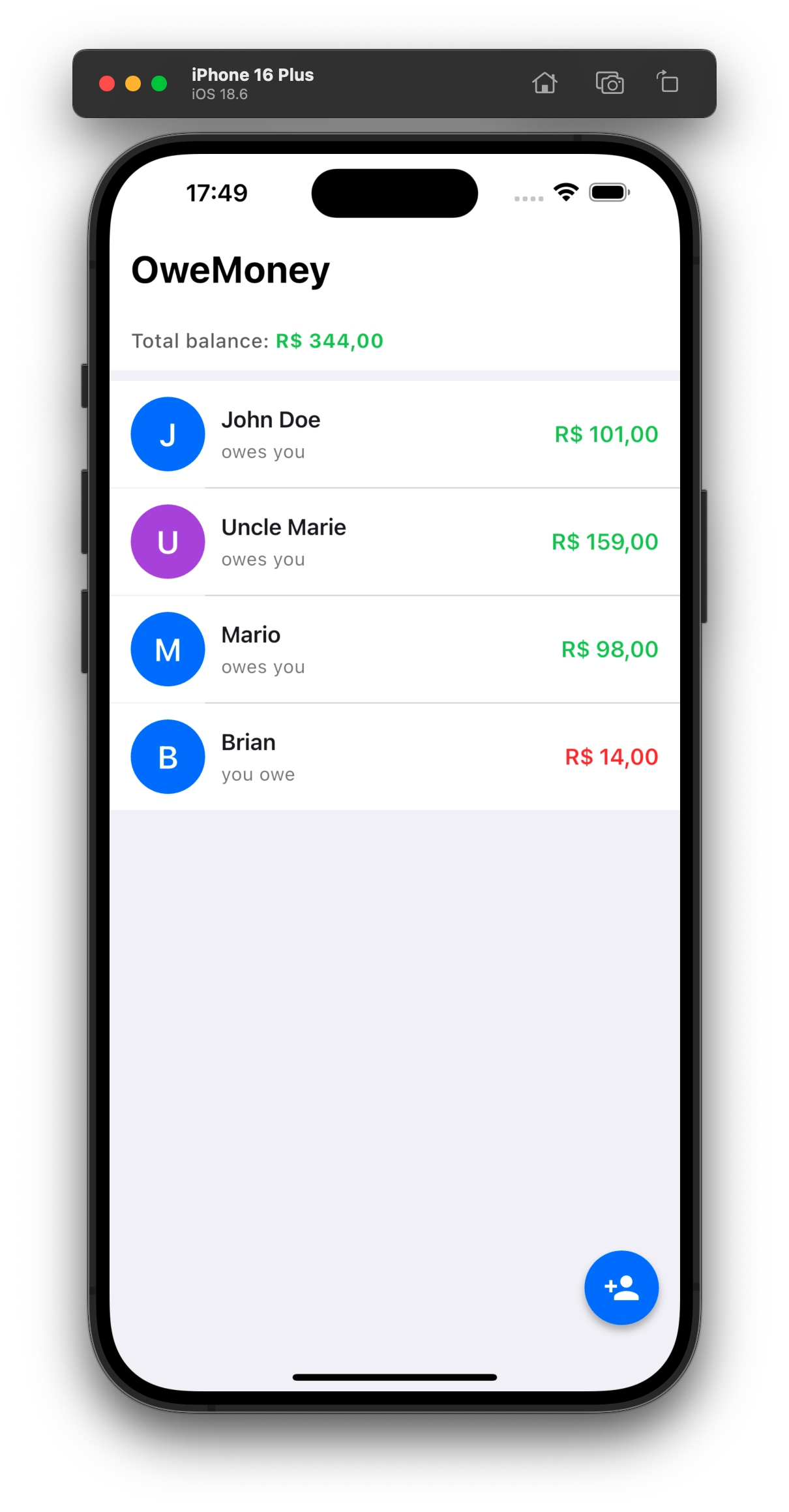 App Flutter para rastrear quem te deve e quem você deve. Interface familiar ao WhatsApp com tracking bidirecional de dívidas, persistência local via Drift/SQLite e design inspirado no Human Interface Guidelines da Apple.